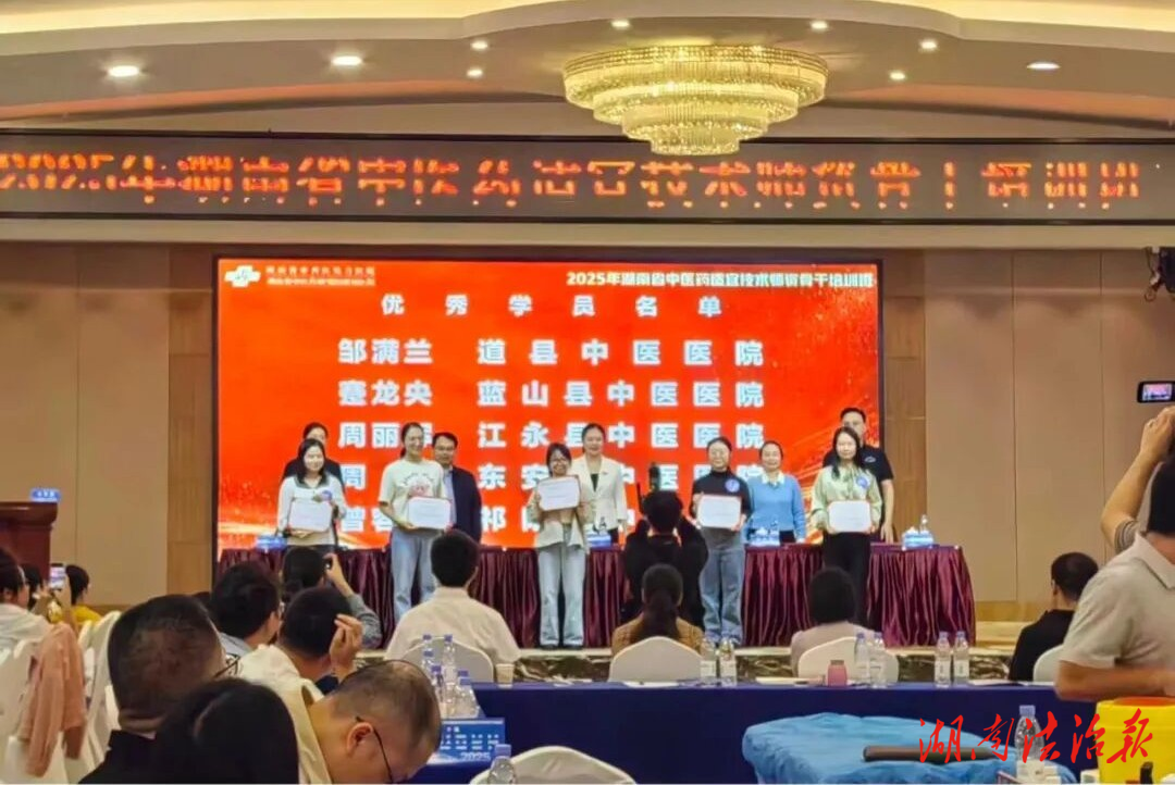 湖南法治报讯(通讯员 李昌春 邱瑾 唐海莲)近日,由湖南省中医药管理局主办,湖南省中医药研究院、湖南省中西医结合医院联合承办的2025年县级中医医院中医药适宜技术师资骨干培训班圆满落幕。道县中医医院作为县级中医医院代表,选派的6名业务骨干医师不仅高质量完成培训任务,更凭借优异表现为医院赢得“优秀组织奖”,治未病科邹满兰获评“优秀学员奖”,为医院中医药适宜技术推广工作写下亮眼一笔。