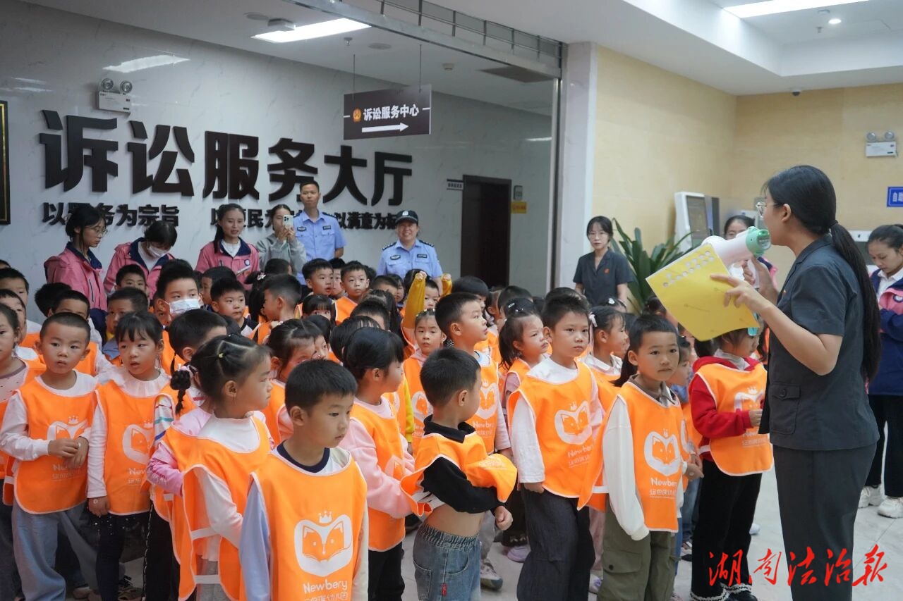 9月25日,常德市鼎城区人民法院迎来了一批特殊的“小客人”——纽伯瑞幼儿园73名萌娃。奶声奶气的提问、蹦蹦跳跳的身影,让庄严的法院瞬间变成“大型法治乐园”。