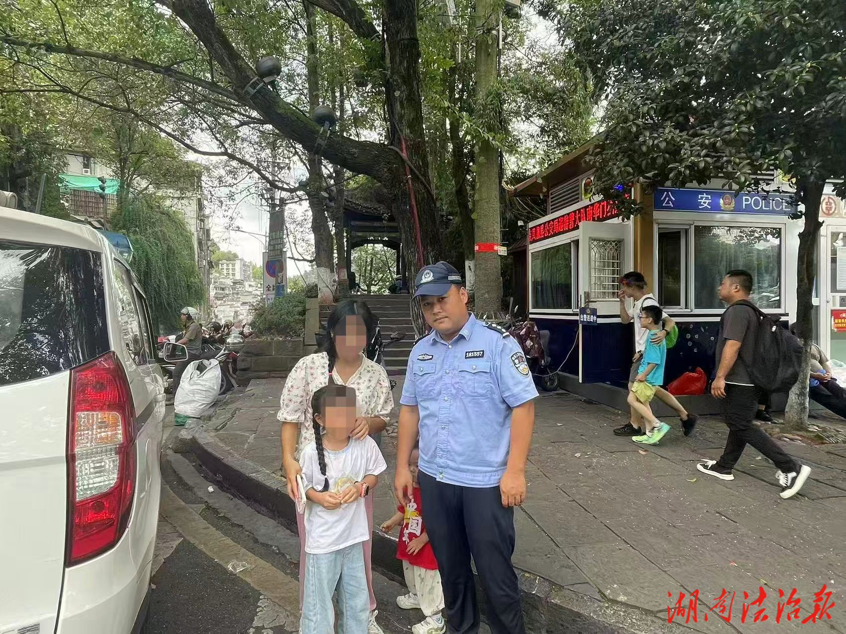 湖南法治报讯(通讯员 龚新 宋思瑶)2025年10月2日,凤凰县公安局巡特警大队在南华门治安岗亭成功救助一名五岁走失女童,并将其安全送回家长手中。