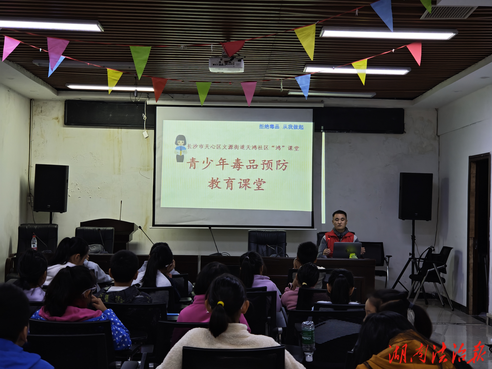 湖南法治报讯(通讯员 贺佳)为深入推进青少年毒品预防教育,筑牢青少年健康成长防线,2025年11月2日下午,长沙市天心区文源街道天鸿社区党委、禁毒工作站、平安创建分会携手中南大学土木工程学院团委,在社区新时代文明实践站开展禁毒法治主题宣传活动,为青少年及家长送上实用的安全与法律知识“大餐”。