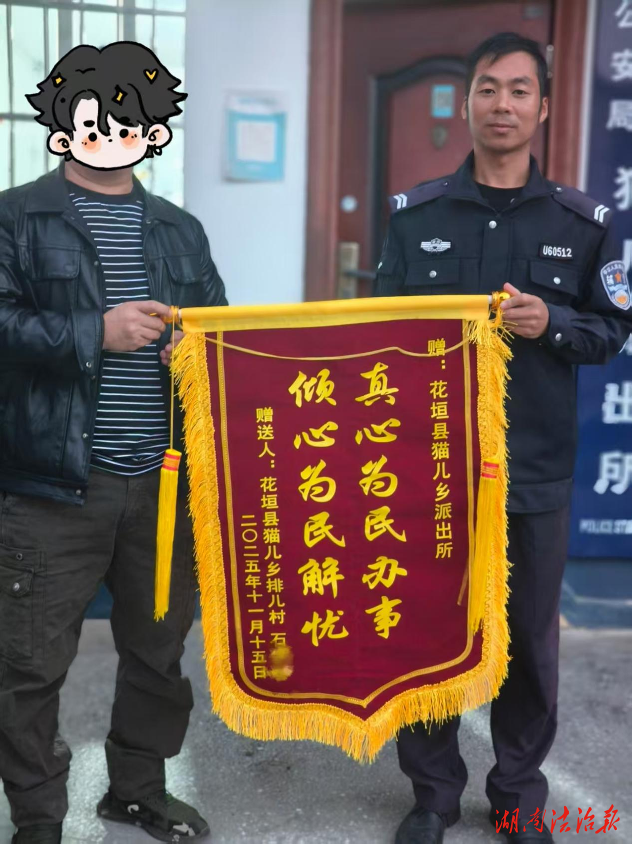 湖南法治报讯(通讯员 隆爱斯)“真的太感谢你们了!要不是你们及时出手,后果真不敢想象!”11月15日上午,辖区群众石某将一面写有“真心为民办事 倾心为民解忧”的锦旗送到花垣县公安局猫儿派出所民警手中,感谢民警在危急时刻的暖心救助。