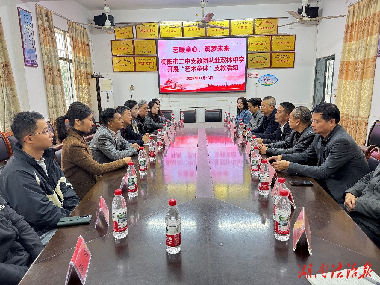 湖南法治报讯(通讯员 曹姣姣)为丰富乡村学生体育、艺术文化生活,搭建校际交流桥梁,11月13日下午,衡阳市第二中学赴双林中学开展“艺术童伴”支教活动。此次活动由党委委员彭剑锋带队,创新教育中心主任邹谦,教研室主任肖明智,党政办主任曹姣姣,音乐教研组长邹进军,声乐老师何庆圆,舞蹈老师林湘,美术老师彭兆熊、刘志文,体育教师陈青一同参加。