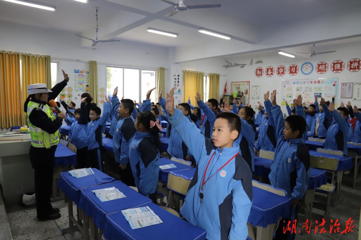 湖南法治报讯(通讯员 王伶俐 陈怡惟)今年12月2日是第十四个“全国交通安全日”,今年的宣传主题为“文明交通 礼行天下”。为广泛普及交通安全知识,有效提升学生自我安全保护能力,11月18日,冷水滩区梅湾小学三(6)班特别邀请校外辅导员——冷水滩区交警支队的邹声延警官走进校园,为师生带来了一场别开生面的交通安全知识讲座。