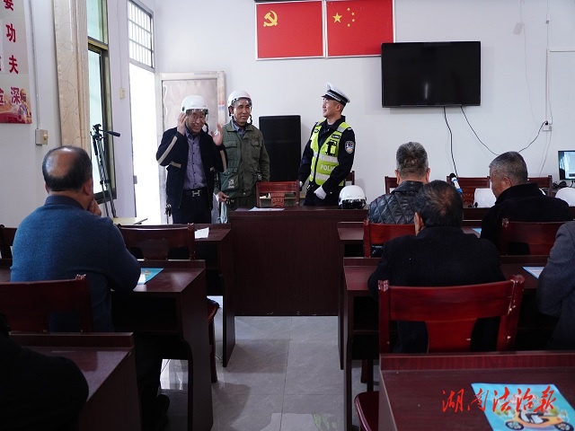 湖南法治报讯(通讯员 曾庆屏)11月28日,蓝山县公安局交管大队民警带着交通安全知识深入国道省沿线的塔峰镇成家村、舜水村,通过宣传教育提升村民“识风险会避险”的安全意识,预防和减少道路交通事故。
