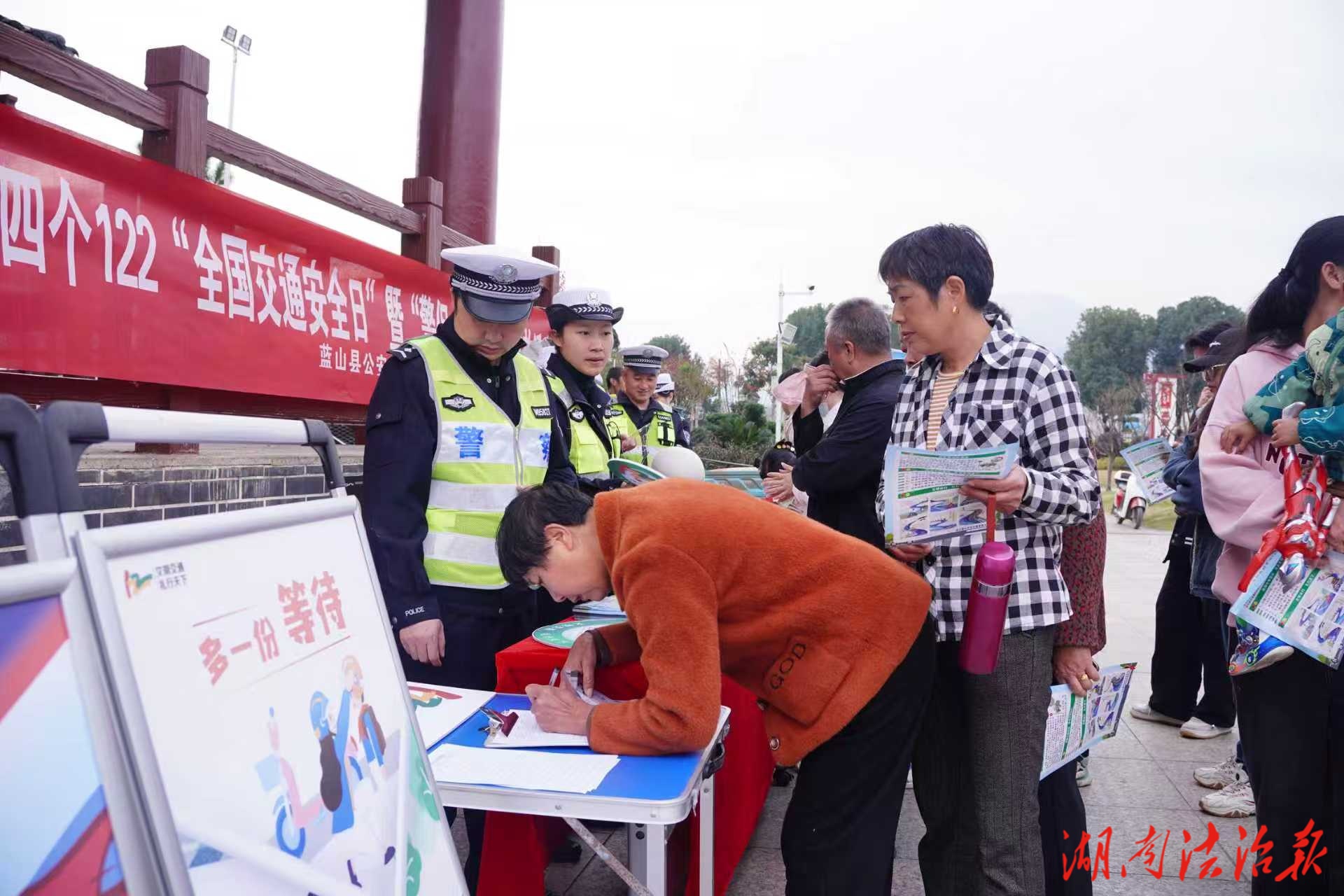 湖南法治报讯(通讯员 曾庆屏)今年12月2日,是第十四个“全国交通安全日”。为让文明交通更加深入人心,筑牢交通安全根基,12月2日上午9时许,蓝山县委宣传活动部、县文明办、县公安局交通管理大队等部门在塔下寺文化广场联合开展以“文明交通 礼行天下”为主题的122“全国交通安全日”宣传活动。
