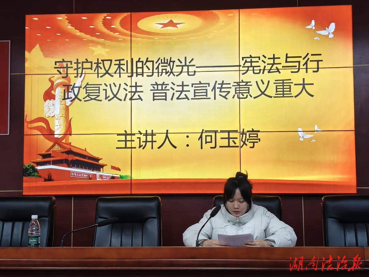 第二位主讲人则将目光聚焦于法治大厦的根基与公民权利的保障,作了题为《宪法与行政复议法:普法宣传意义重大》的分享,她深刻论述了宪法作为国家根本法的至高地位与“权利宣言书”的核心价值,指出宪法宣传的终极目的在于让法治信仰深入人心,让尊崇宪法、维护宪法成为全社会的自觉行动。