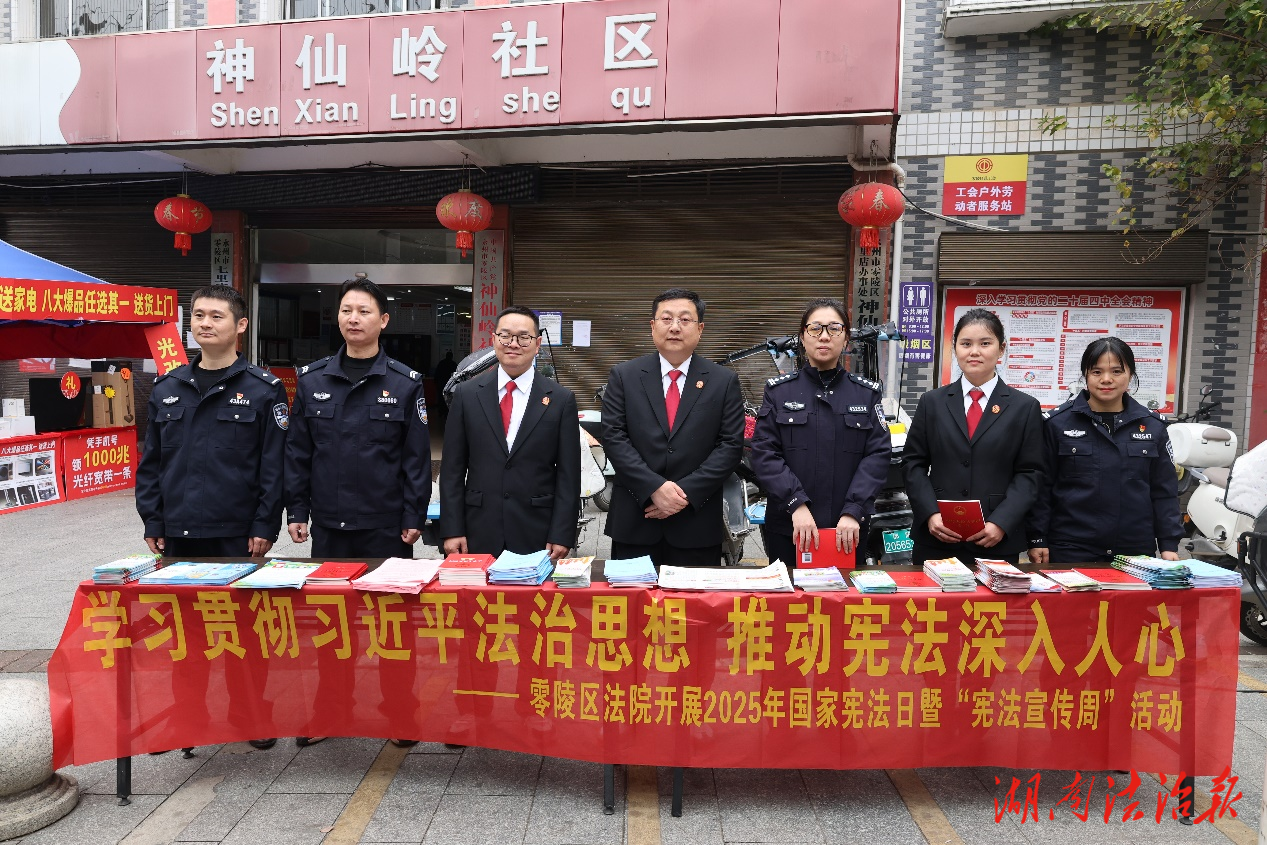 湖南法治报讯(通讯员 郑炫程)为进一步弘扬宪法精神,提高群众的法律意识和法治观念,12月4日国家宪法日当天,永州市零陵区人民法院干警走进神仙岭社区,开展“学习贯彻习近平法治思想 推动宪法深入人心”普法宣传活动,营造浓厚的法治宣传氛围。