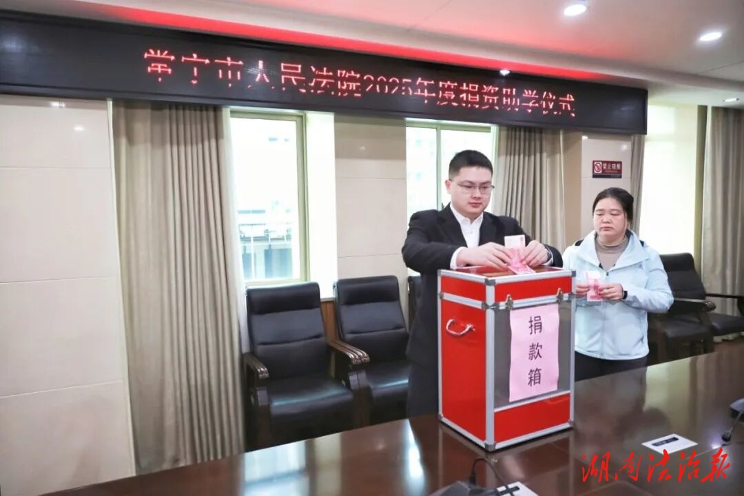 湖南法治报讯(通讯员 刘锦璇)近日,常宁市人民法院在五楼院务会议室举行捐资助学仪式。院领导班子成员率先垂范,各部门负责人积极响应,以现场自愿捐款的形式汇聚爱心力量,用实际行动践行司法为民的初心使命,为常宁教育事业发展贡献司法担当。