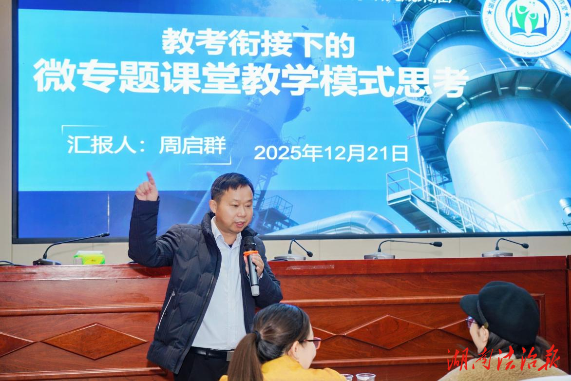 湖南法治报讯(通讯员 贺燕琦 李满霞)2025年12月,为深入贯彻新课程改革精神,推动高中语文教学改革,湖南省“双名计划”周启群高中语文名师工作室应衡阳市与娄底市多所中学邀请,相继在衡阳市第八中学、娄底市第三中学、娄底市第二中学开展了“基于深度学习的统编高中语文群文阅读读写一体化教学研究”的成果推广系列活动。活动通过专题讲座、示范课展示、研讨交流等形式,为两地一线语文教师带来了前沿的教学理念与实用的备考策略,反响热烈。