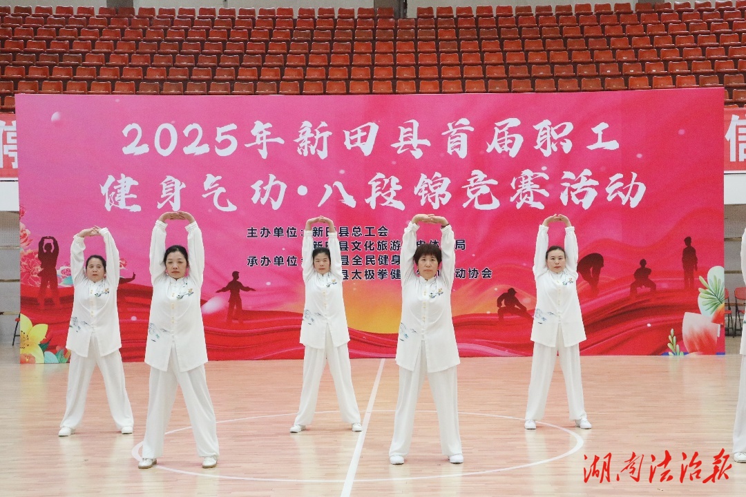 湖南法治报讯(通讯员 卓宇斌)10月25日,由新田县总工会、县文化旅游广电体育局联合主办,县全民健身服务中心、县太极拳健身气功运动协会承办的新田县首届职工健身气功、八段锦比赛在县文体中心举行。肖亚飞、彭晓军等县领导出席活动。来自全县各机关、企事业单位和社会团体组成的29支代表队参加比赛。