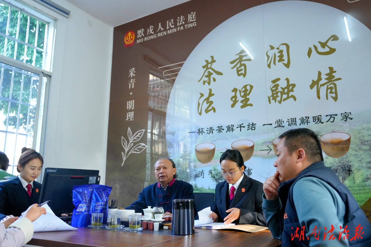 龙献文表示,古丈以茶立县,默戎法庭“茶事调解室”的设立,正是司法服务与本地茶文化深度融合的生动体现。“茶事调解室”不仅是一个场所,更是一种机制、一种理念。它融合了接地气的调解场景、多元化的调解力量、法治化的保障机制,成为新时代“枫桥经验”在基层的鲜活实践。