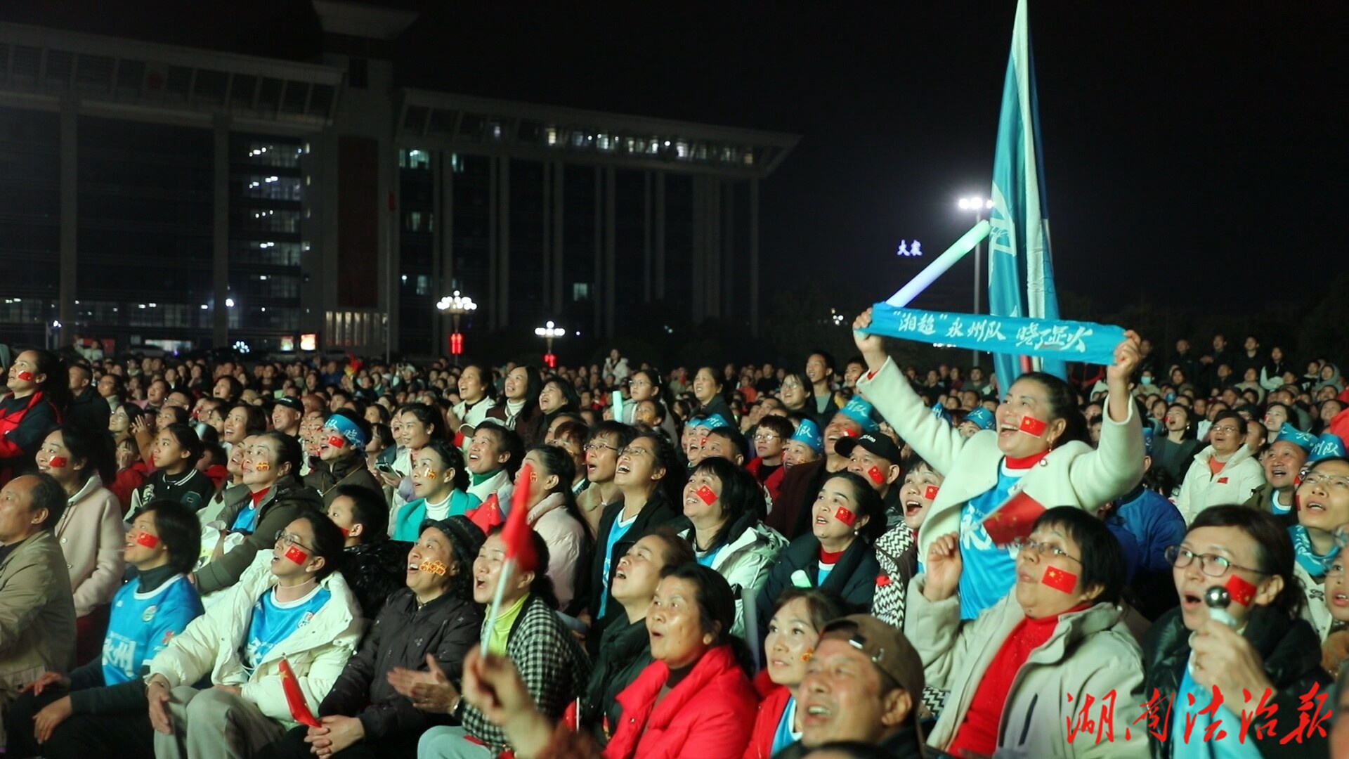 湖南法治报讯(通讯员 唐桂海 陈前 易恒戬 邓志宇)12月20日,东安县和谐广场灯火璀璨、人声鼎沸,湘超半决赛永州队客场挑战长沙队的“第三现场”观赛活动在此火热开启。数万名东安球迷齐聚一堂,通过超大屏幕同步见证这场巅峰对决,用最炽热的呐喊为永州球队加油助威。