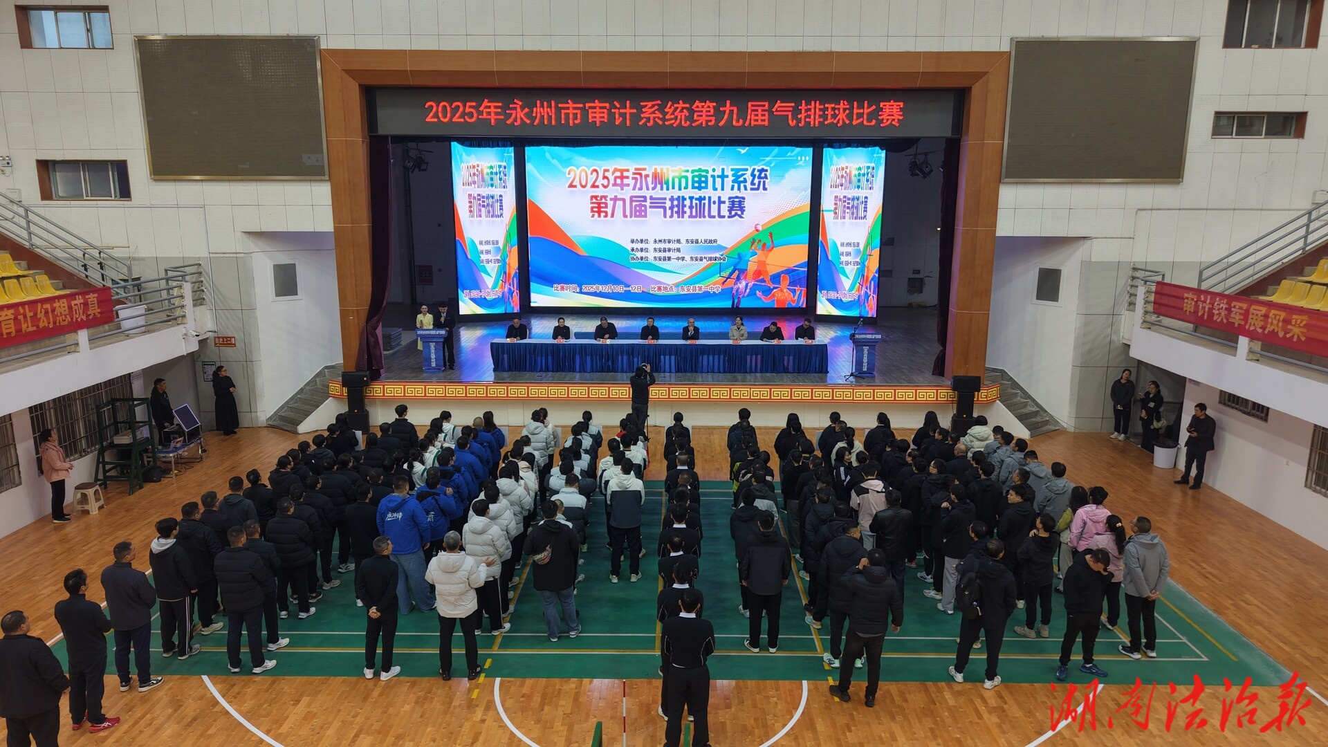 湖南法治报讯(通讯员 陈学华)为丰富干部职工的文化体育生活,进一步增强审计队伍的凝聚力与战斗力,12月11日上午,2025年永州市审计系统第九届气排球赛在东安县激情开赛。市审计局党组书记、局长杨复权,县委书记唐何,县委常委、常务副县长张恒出席。