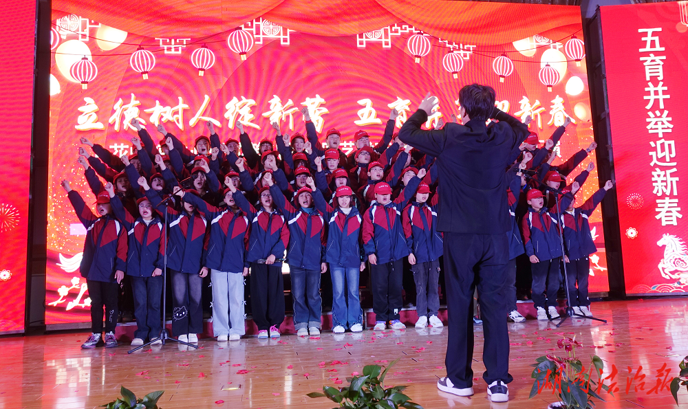 湖南法治报讯(通讯员 刘乐根 王浩 王玖华)双峰县花门镇举办校园艺术节喜迎马年元旦佳节。2025年12月30日,由该镇中心学校主办、花门一中和花门中心小学承办的“立德树人绽新蕾、五育并举迎新春”为主题的“第八届校园艺术节暨2026年庆元旦文艺汇演活动,在雄壮的国歌中,开启了活动的帷幕。全体中心学校成员出席活动并分别担任评委。