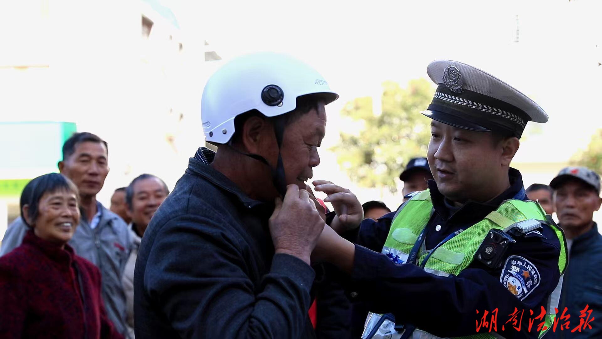 江永交警:“花式”送安全,头盔“戴”回家