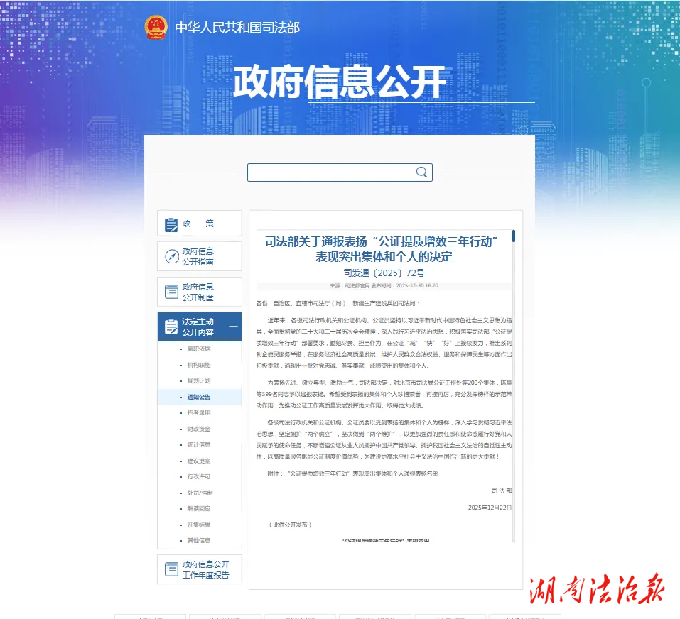 近日,司法部对“公证提质增效三年行动”表现突出集体和个人进行通报表扬。其中,岳阳市湘北公证处荣获“公证提质增效三年行动”表现突出集体通报表扬。
