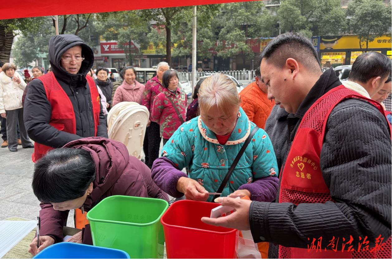 湖南法治报讯(通讯员 叶若兰)冷水滩中心城区首位度的提升,既离不开产业发展的硬核支撑,也需要城市治理的精细赋能。垃圾分类作为城市精细化管理的“关键小事”,直接关系市民生活品质与城市文明形象。为推动垃圾分类理念深入人心,切实提升市民分类实操能力,近日,永州市冷水滩区环卫和园林中心和区城管执法局一道在创发城大新超市门口举办了一场别开生面的垃圾分类集中宣传活动,以群众喜闻乐见的方式推动分类理念深入人心,为提升城市首位度注入绿色动能。