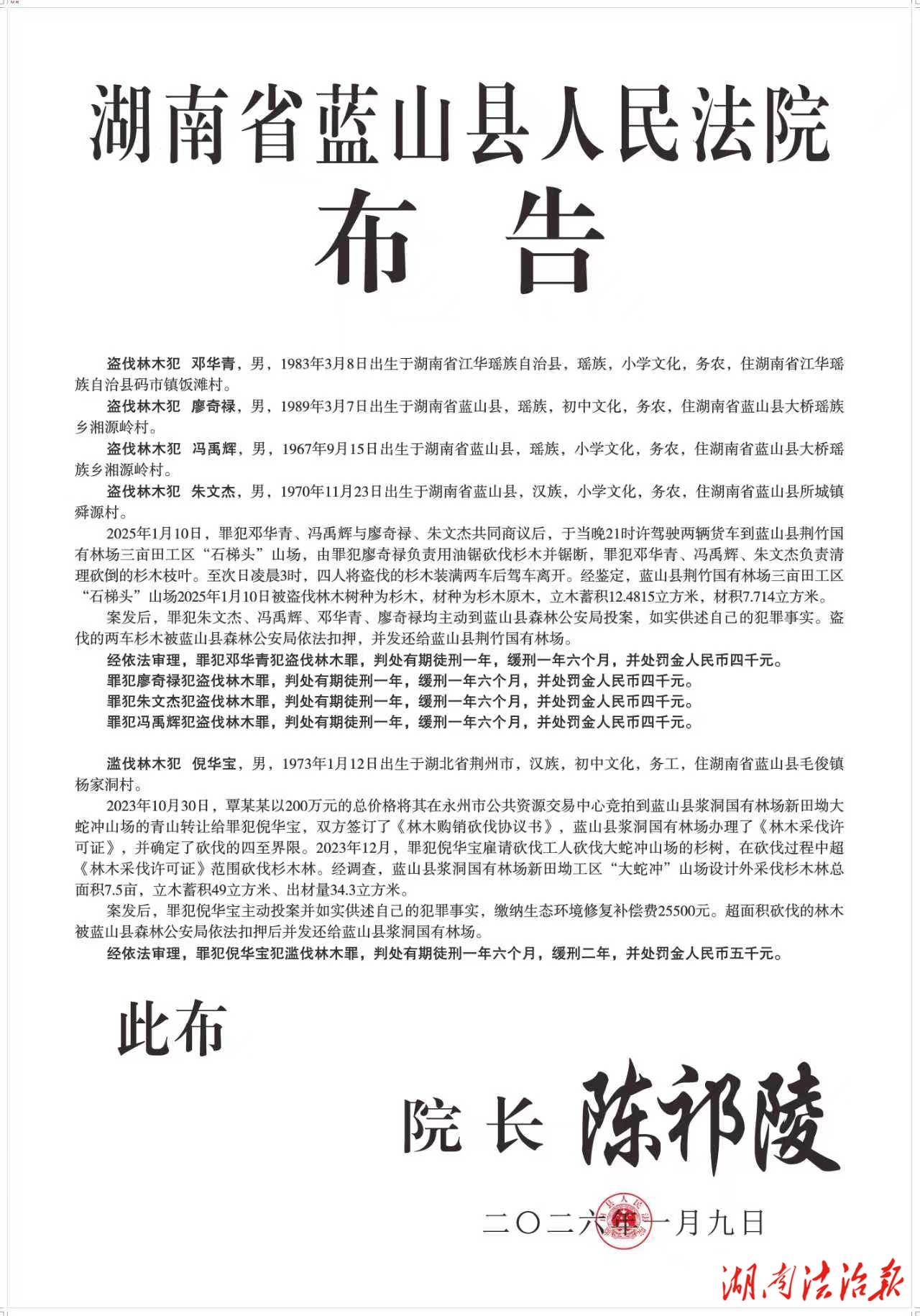 蓝山法院发布打击盗伐、滥伐林木犯罪专题布告 筑牢生态保护法治防线