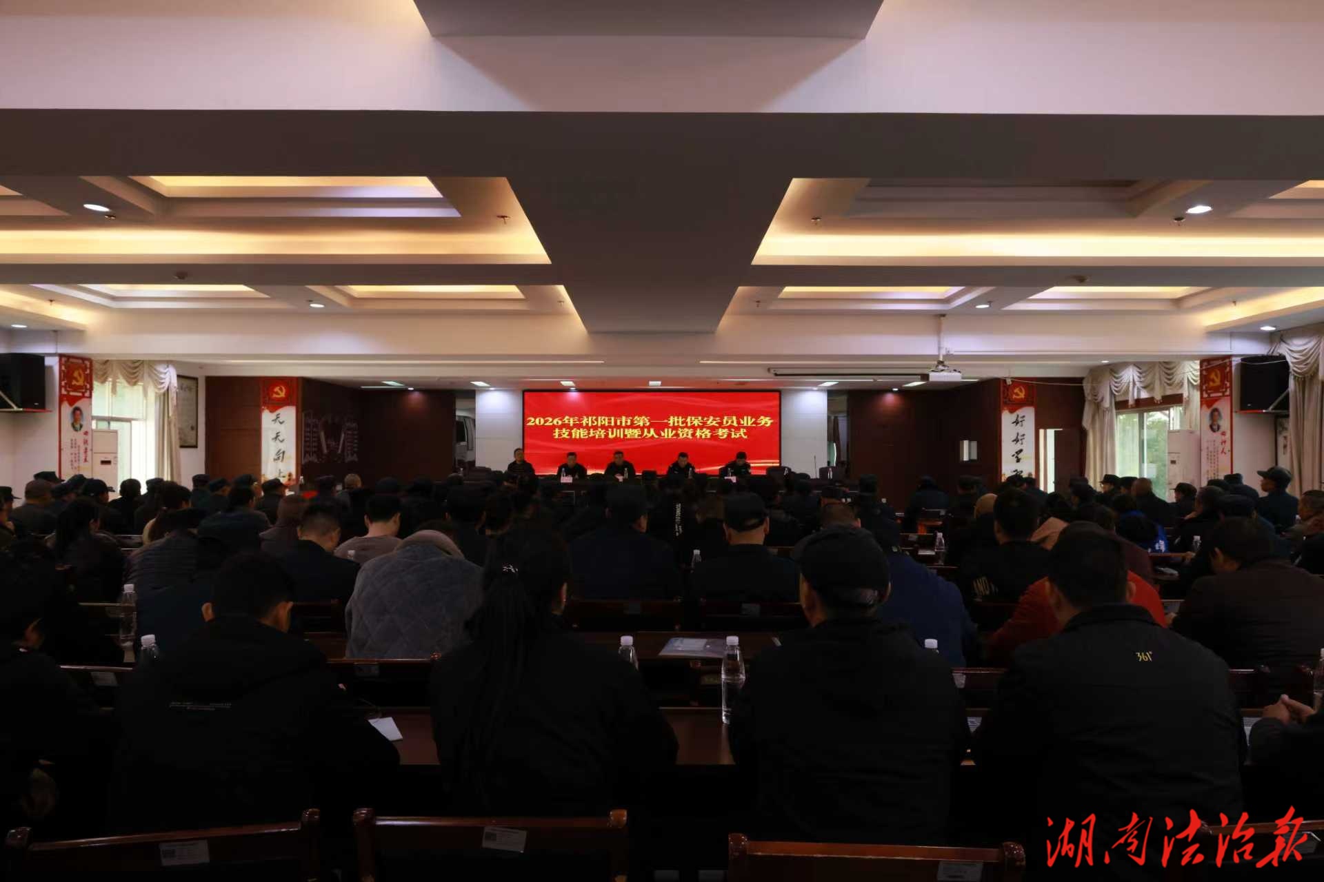 湖南法治报讯(通讯员 王顺桥 李会生)为全面加强保安服务行业监管,提升保安员持证上岗率与队伍整体素质,1月15日,在永州市公安局治安支队的指导下,祁阳市公安局治安大队联合巡特警大队、安盾保安公司等单位,共同举办2026年祁阳市首批保安员业务技能培训暨资格考试,全市共160余名保安员参加。