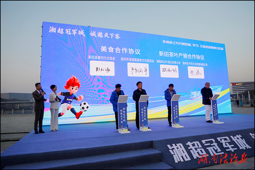 湖南法治报讯(通讯员 钟伟锋 郑锋)“从足球热爱到文化联动,这份跨越千里的情谊太珍贵了!”1月15日,“湘超冠军城,诚邀天下客”永州赴江苏答谢、学习、交流活动扬州分会场在扬州市京华城广场举行,活动现场扬州球迷郑先生难掩激动。
