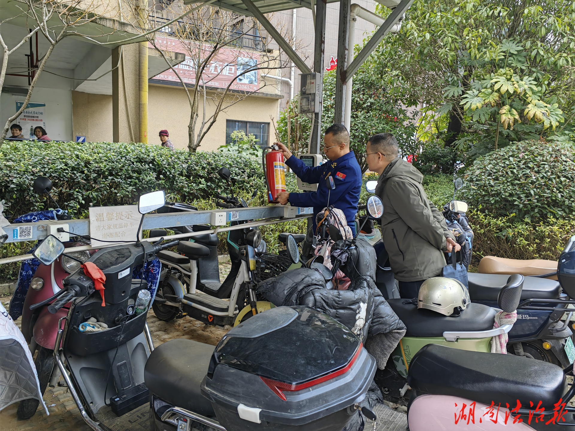 ——联动管控筑防线,整治模式实现“从点到面”。为避免整治“一阵风”,我县建立常态化管控机制,让安全防线持续筑牢。按照《绥宁县电动自行车、电动摩托车安全隐患全链条整治行动实施方案》,专班成员单位分工协作,住建局督促物业落实主体责任,规范小区停放秩序;消防救援大队强化居民区架空层管理,在电梯、门厅张贴禁止进楼提示300余张,年内开展巡查检查60余次,整改问题100余处。
