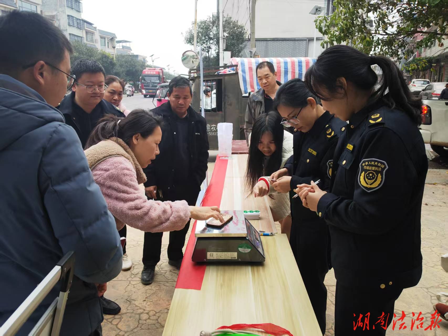 湖南法治报讯(通讯员 邓玉园)年关将至,“菜篮子”“果盘子”里的民生计量成了群众最关心的事。近日,江永县市场监督管理局紧扣“年关守护”专项行动要求,在各大集贸交易市场、大型商超等人员密集场所开展“手机变砝码 计量惠民生”主题宣传暨计量检查行动,以“宣传+执法”双轮驱动让群众掌握“随身维权技巧”,用精准计量守护岁末消费公平。