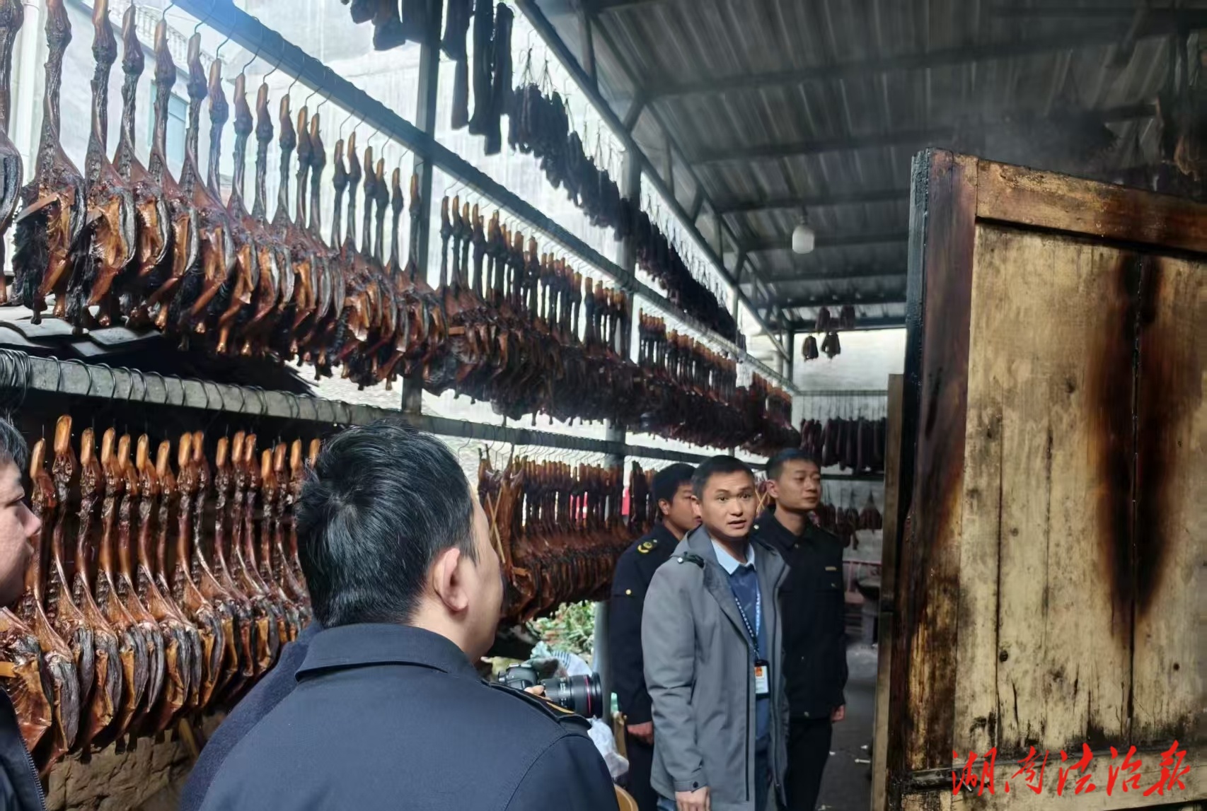 湖南法治报讯(通讯员 邓玉园)春节临近,江永城乡腊味飘香,腊肉、腊肠、板鸭等传统年货陆续端上百姓餐桌。为守护好这份“家乡味”的安全,近日,江永县市场监督管理局紧扣“年关守护”专项行动部署,结合本地年俗特点,组织23名执法人员3个专项检查组,在全县9个乡镇(街道)开展腌腊制品全覆盖监督检查,用严格监管为群众的“年味餐桌”筑牢安全防线。
