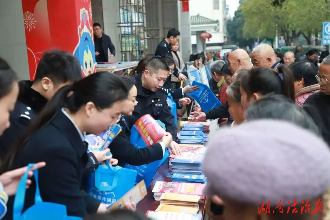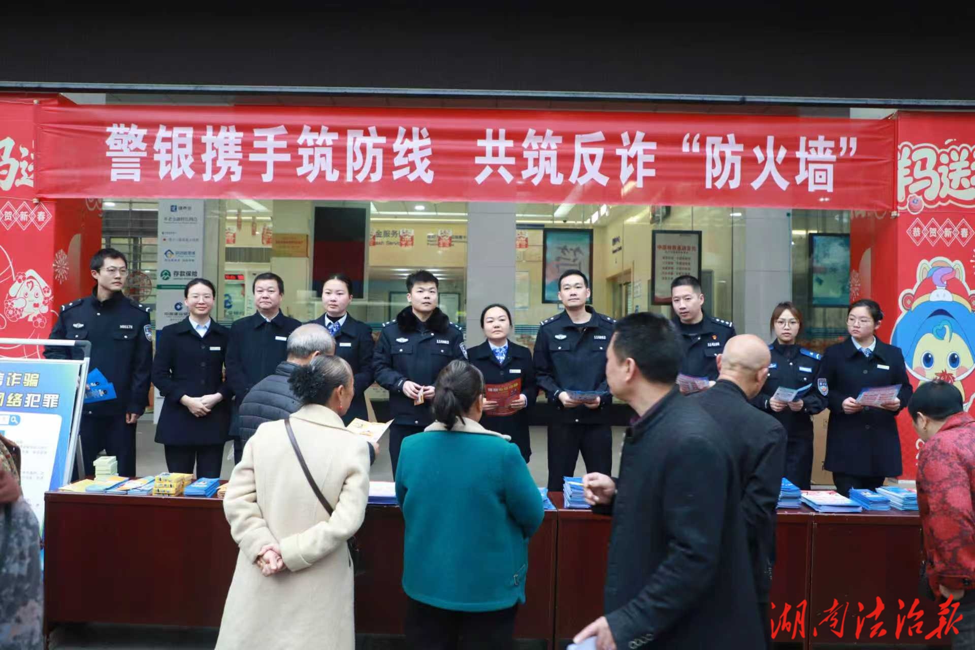 湖南法治报讯(通讯员 刘程林)为营造平安祥和的节日氛围,切实提升群众防骗识诈能力,1月16日上午,蓝山县公安局反诈中心联合中国建设银行蓝山支行,在县城繁华集市开展“警银携手,共筑反诈防火墙”主题宣传活动,将反诈知识与新春祝福一同送到群众身边。