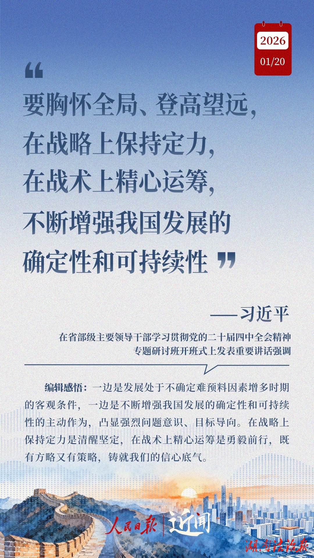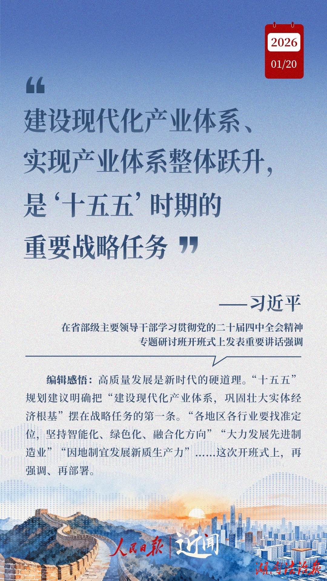 “十五五”开局之年的“开年第一课”,主题是“学习贯彻党的二十届四中全会精神”。习近平总书记在省部级主要领导干部学习贯彻党的二十届四中全会精神专题研讨班开班式上的重要讲话,既彰显战略眼光的宏阔,也划明接续奋斗的重点。