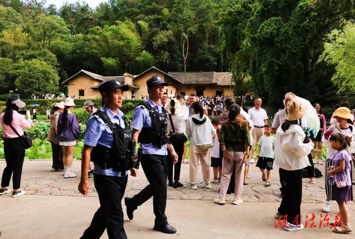 强化底线思维,确保安保万无一失。以“最高标准、最严要求、最实作风”全面投入到毛泽东同志诞辰132周年群众活动安保当中,确保了安全有序。始终把守护好红色研学活动作为“传承红色基因、赓续红色血脉”的一项重要政治任务抓实抓细,以“点对点、精准性、伴随式”服务,保障161批次、53.2万“我的韶山行”红色研学师生的平安有序,实现全年警保卫工作和研学活动“零事故、零舆情、零投诉”。在重要节点组织警力前置景区、交通枢纽、大型活动场所开展安全巡查和应急值守,有效防范化解潜在安全风险。圆满完成湘潭市第三届旅游发展大会等安保任务。