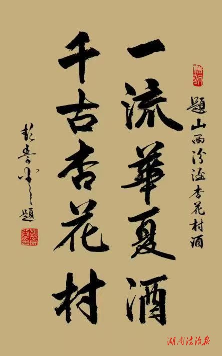 或许是和山西杏花村酒真有缘分,我的文友当代文化名人彭崇谷先生题山西杏花村酒的书法作品:一流华夏酒 千古杏花村。好有气派的一幅书法作品,恰到好处的形容,让人一看过目不忘,回味无穷!它是春日里那一抹最温柔的绯红,是酒香中那一缕最绵长的记忆,是人们心中那一处最温暖的港湾。这就是对杏花村酒最好的诠释。