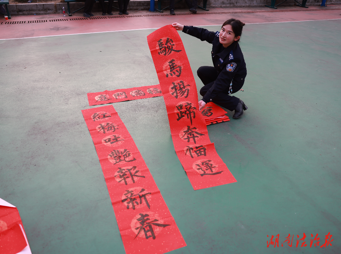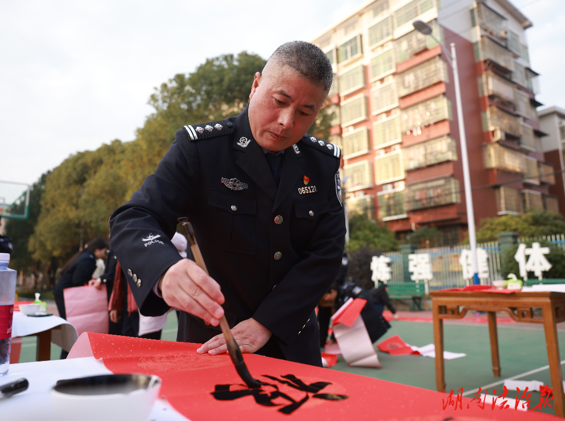 湖南法治报讯(通讯员 龙嘉莉 唐江涓)骏马迎春添新色,墨香送福润警心。为深入践行爱警暖警、文化育警理念,传承中华优秀传统文化,丰富警营文化生活,2月3日,邵阳市公安局邀请市书法家协会的书法家和警营书法爱好者专程来到邵阳县公安局开展“骏马迎春,平安送福”送春联下基层活动,以笔墨为坚守岗位的民辅警送上新春祝福,用文化力量凝聚警心士气。