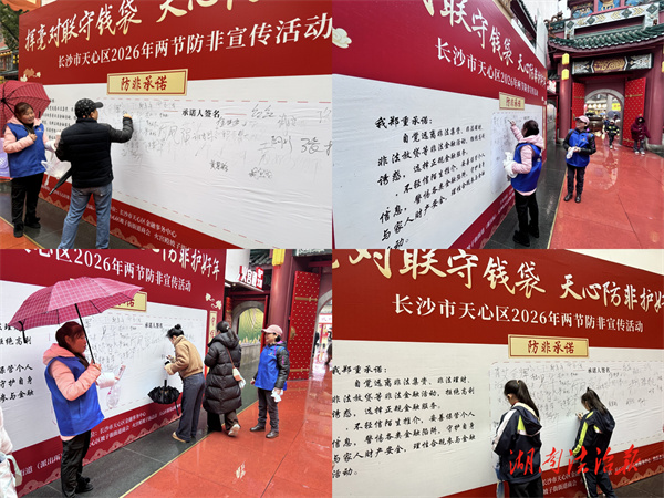 湖南法治报讯(通讯员 贺静)2月6日,长沙市天心区坡子街火宫殿内墨香氤氲、人气鼎盛,“挥毫对联守钱袋 天心防非护好年” 防范非法金融宣传教育活动温情启幕。作为协办单位,长沙市天心区德望志愿服务中心全程统筹发力,以专业志愿服务为这场传统节庆与金融安全融合的活动注入温暖动能,让防非知识深入人心。
