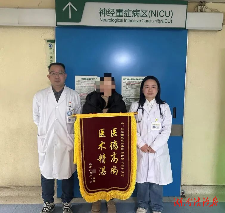 转入普通病房后,经逐层递进的康复治疗后,患者能够独立行走,生活基本自理。出院那天,患者家属为神经重症团队送来了情真意切的锦旗,对救治团队表示感谢。