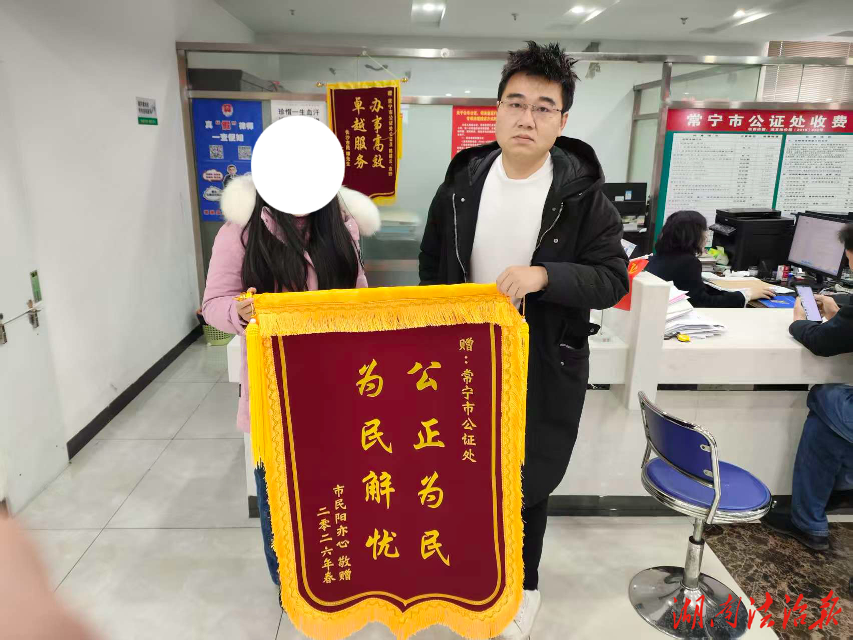 湖南法治报讯(通讯员 朱健)2026年2月11日,市民阳女士将一面锦旗送至常宁市公证处,感谢公证员通过专业调解,为她化解了一场长达两年的债务纠纷。一度被列为失信人员的她,如今手捧生效法律文书,终于舒展愁眉,回归正常生活。
