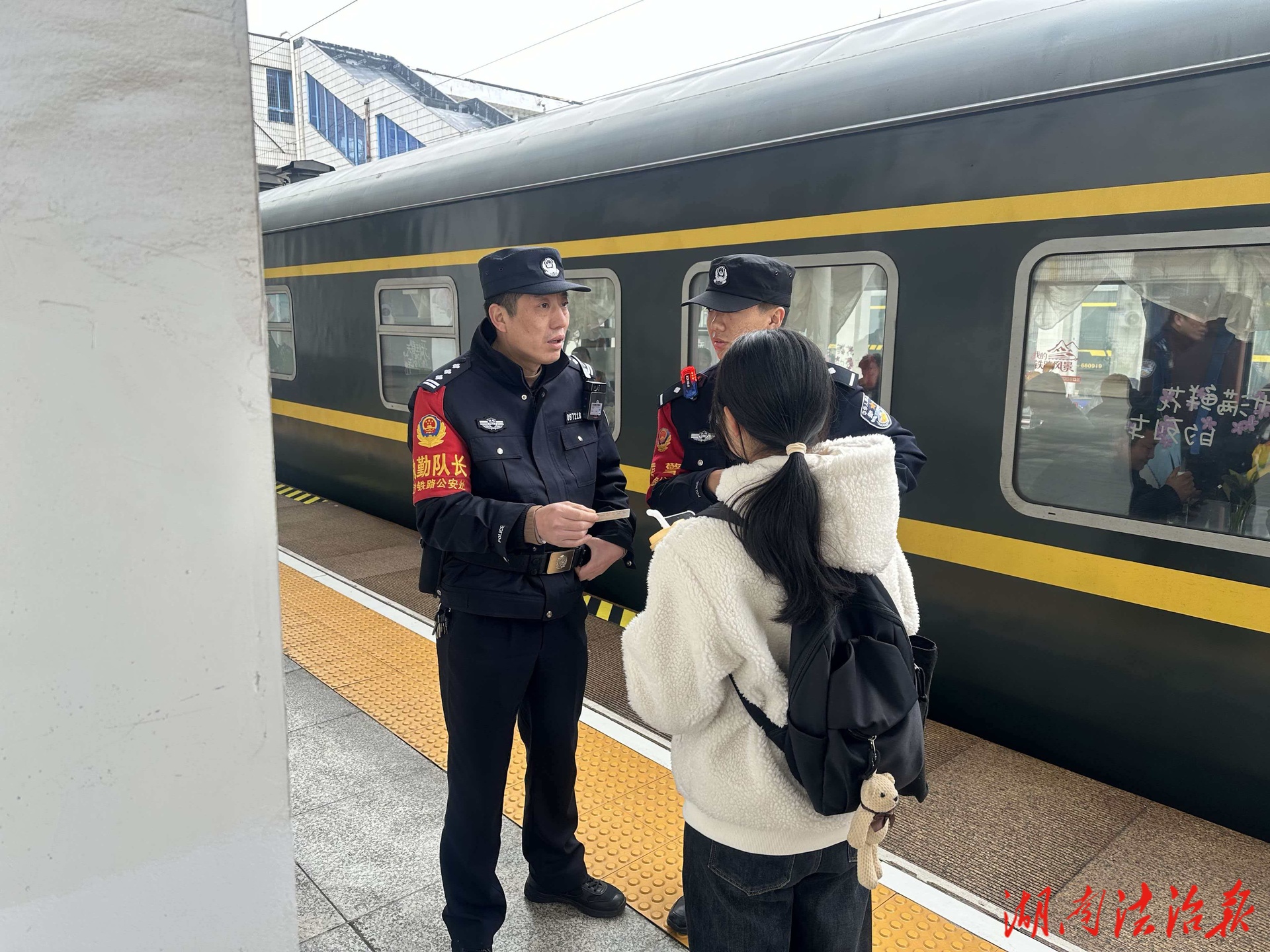 接警后,娄底站派出所民警立即核实女孩所乘车次及座位信息,第一时间与值乘该次列车的乘警取得联系。此时列车已驶离贵阳。乘警根据民警提供的信息,在车厢内迅速找到正戴着耳机低头不语的小张。