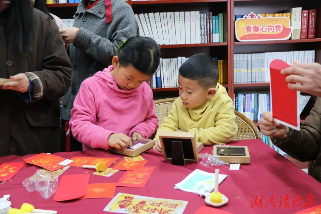 朱砂落纸,拓印的是年味,也是同心。大会尚未启幕,阅览室的非遗拓印体验区早已聚起了人。有的干警握着小朋友的手,教他如何将拓刷压得均匀;有的干警和爱人并肩,在红纸上拓出“福”字的纹样。一张张独一无二的拓印福卡,成了本次大会最特别的“入场券”。