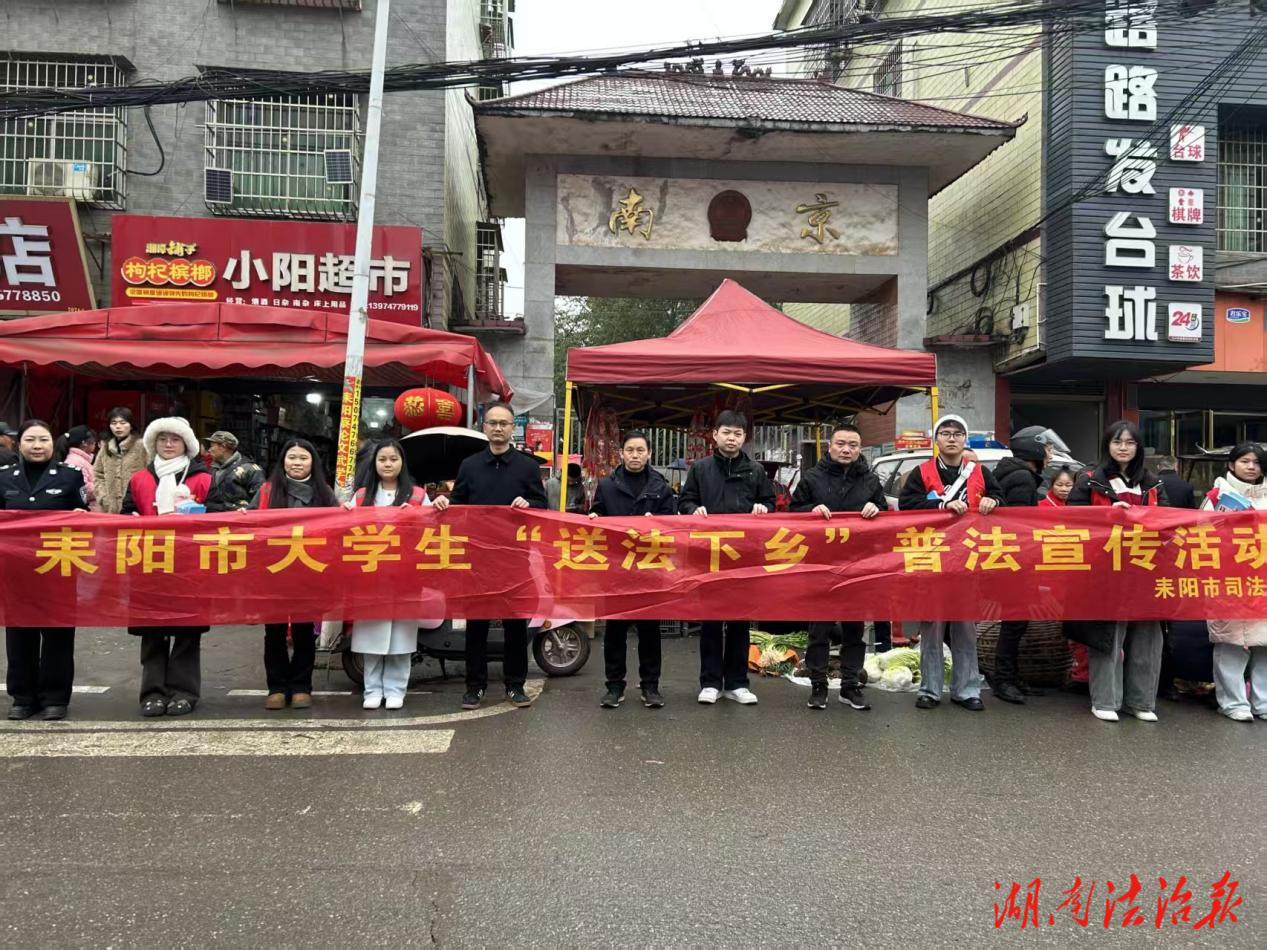 湖南法治报讯(通讯员 谢妍 刘诗怡 吴晋)2月11日,小年至,年味浓。为切实提升群众法治意识和安全防范能力,守护群众平安过节,耒阳市司法局联合南京镇,组织返乡大学生走进南京农贸市场,开展大学生“送法下乡”普法宣传活动,将法治关怀与新春祝福一同送到群众心坎上。