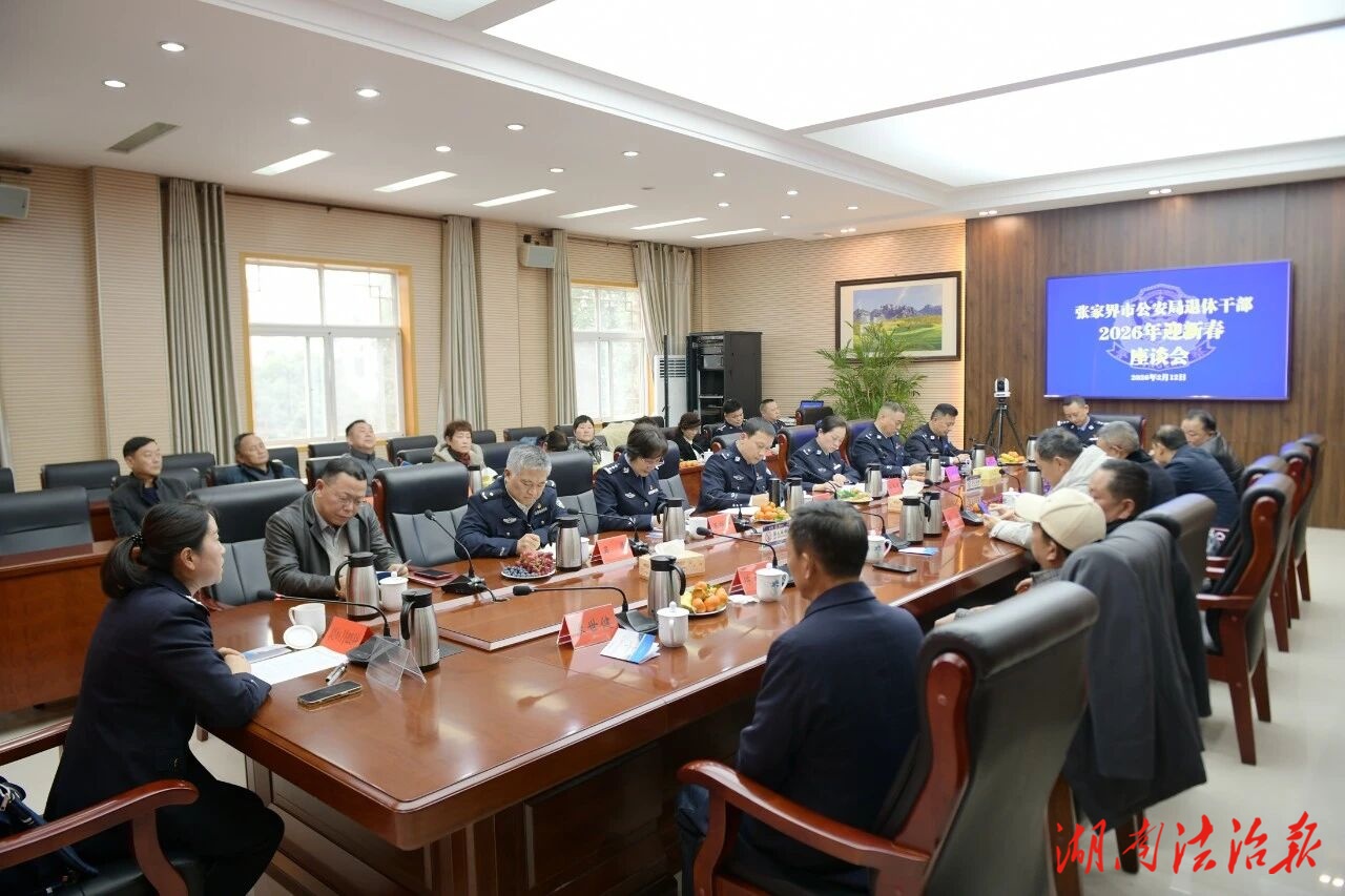 湖南法治报讯(通讯员 张公)新春将至,暖意融融。为传承公安优良传统,传递组织关怀温暖,共话公安事业发展,2月12日,张家界市公安局召开2026年迎新春老干部座谈会。局党委班子成员与退休老干部代表欢聚一堂,忆往昔、话今朝、谋新篇,共迎佳节、共叙情谊。