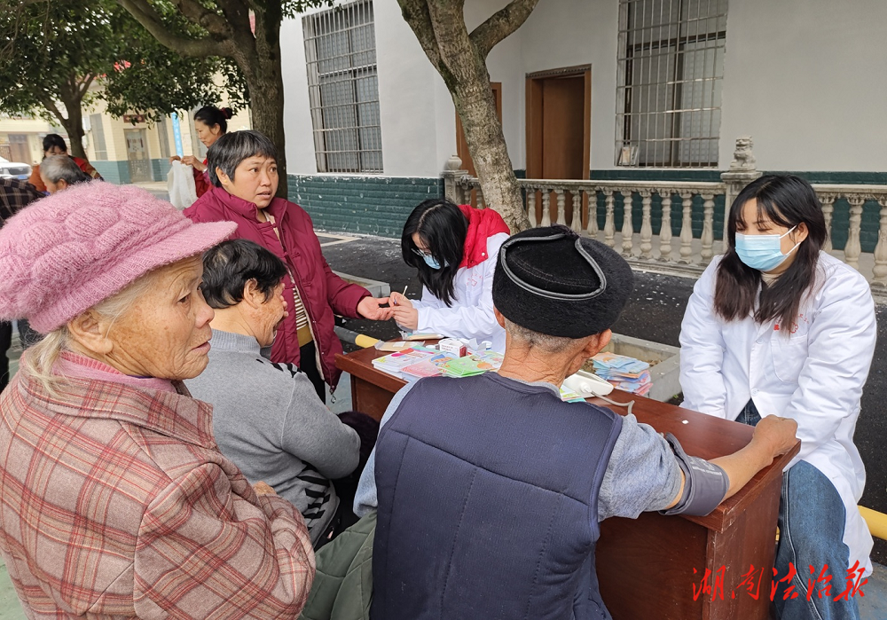 湖南法治报讯(通讯员 李昌春 胡江锋)为深入践行基层医疗机构“健康守门人”职责,切实守护辖区群众健康,2月13日,道县仙子脚镇卫生院院长欧阳维旺带领医疗小队,走进黄田岗村开展健康关怀活动,为村民送上免费义诊、健康宣教及医保政策解读等服务,用实际行动传递健康温暖,筑牢乡村健康防线。