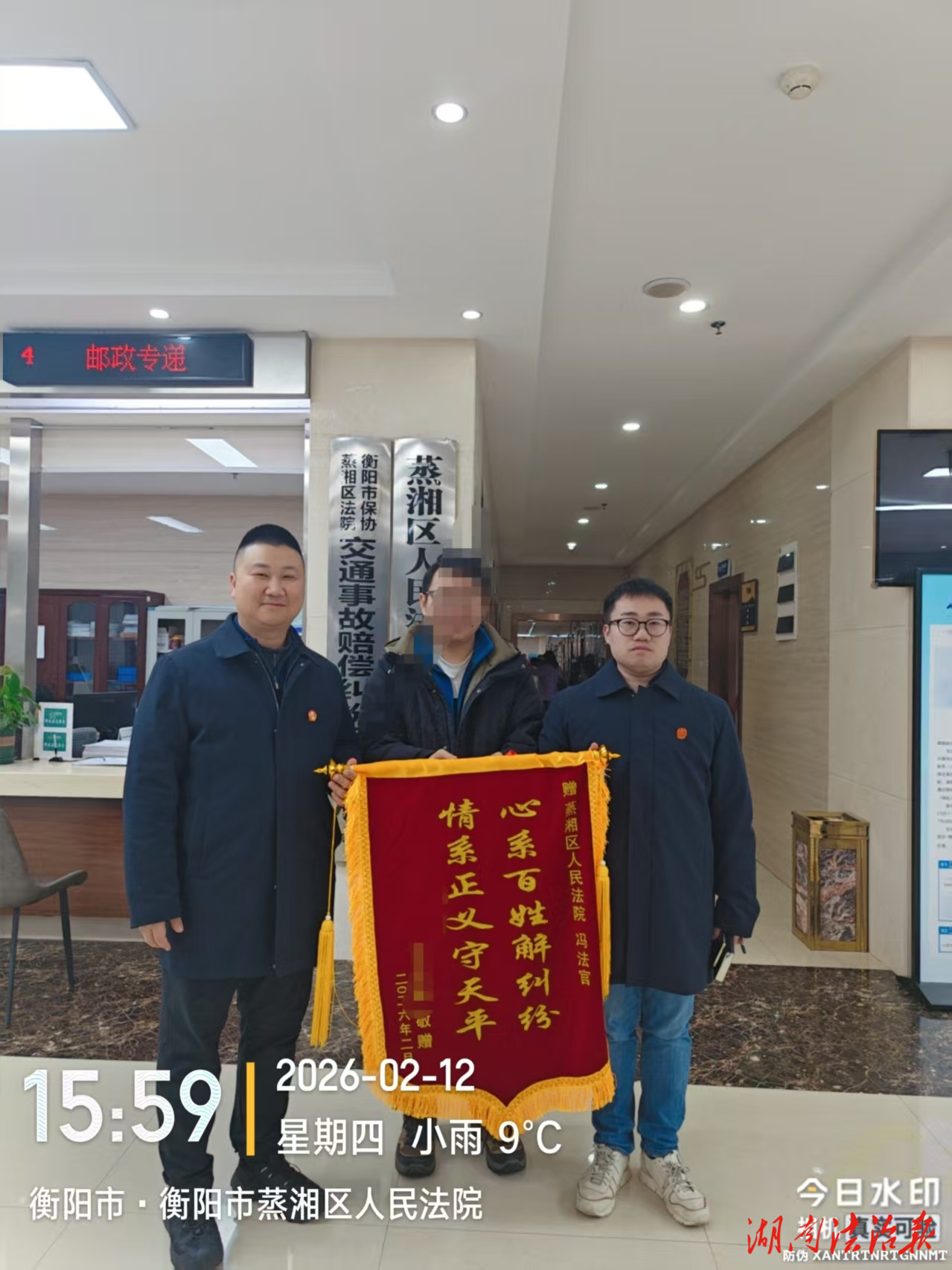 湖南法治报讯(通讯员 冯旭)“冯法助,我终于分期还完13万欠款了!我叫上老邓来法院,在你面前对个账吧!”2026年2月12日,被执行人小刘在偿还最后一笔3万元借款后,声音里难掩激动心情。这起持续三年的执行案件,终于圆满履行完毕,小刘心里踏实了,蒸湘区人民法院执行员冯旭也收到小刘的锦旗致谢。
