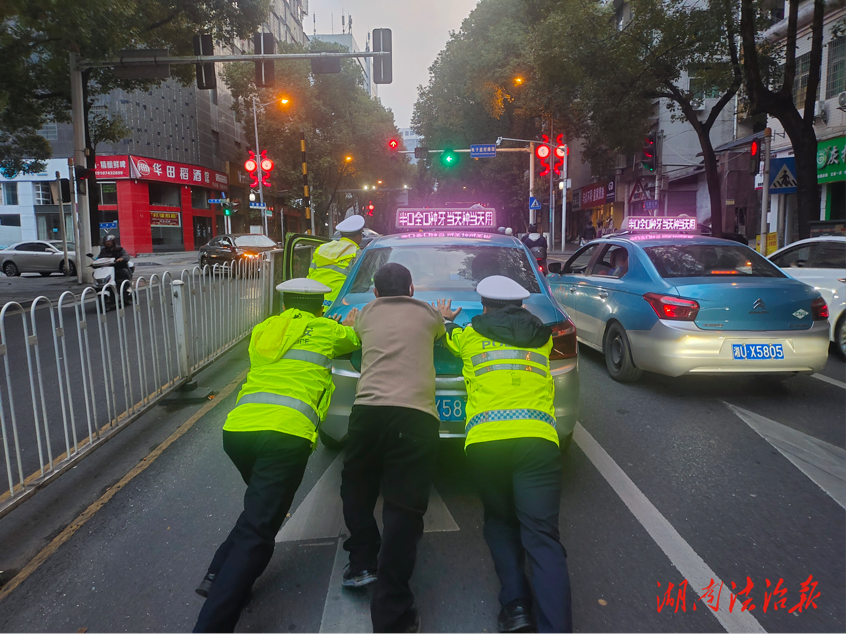 出租车路口突发故障 吉首交警暖心推车保畅通