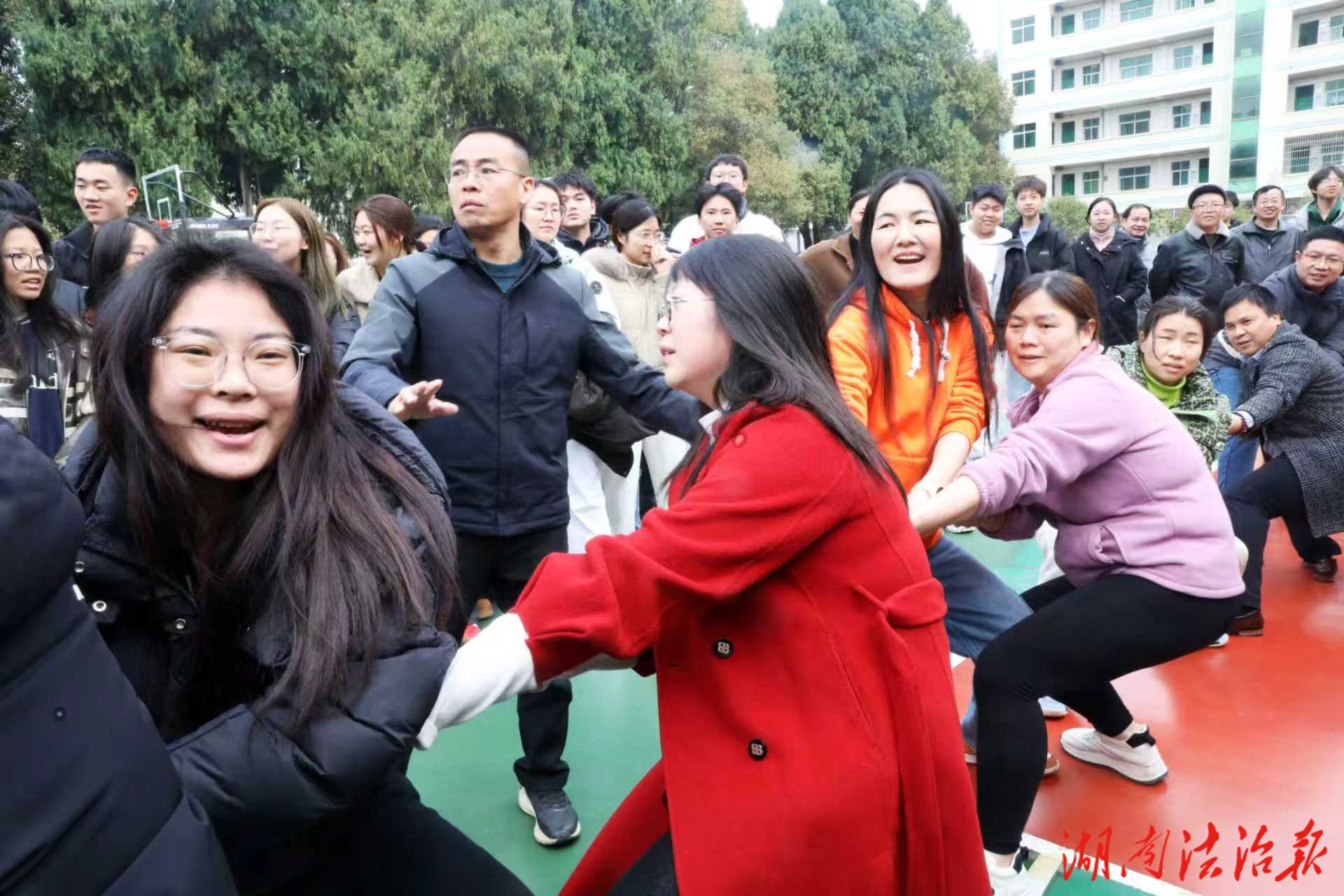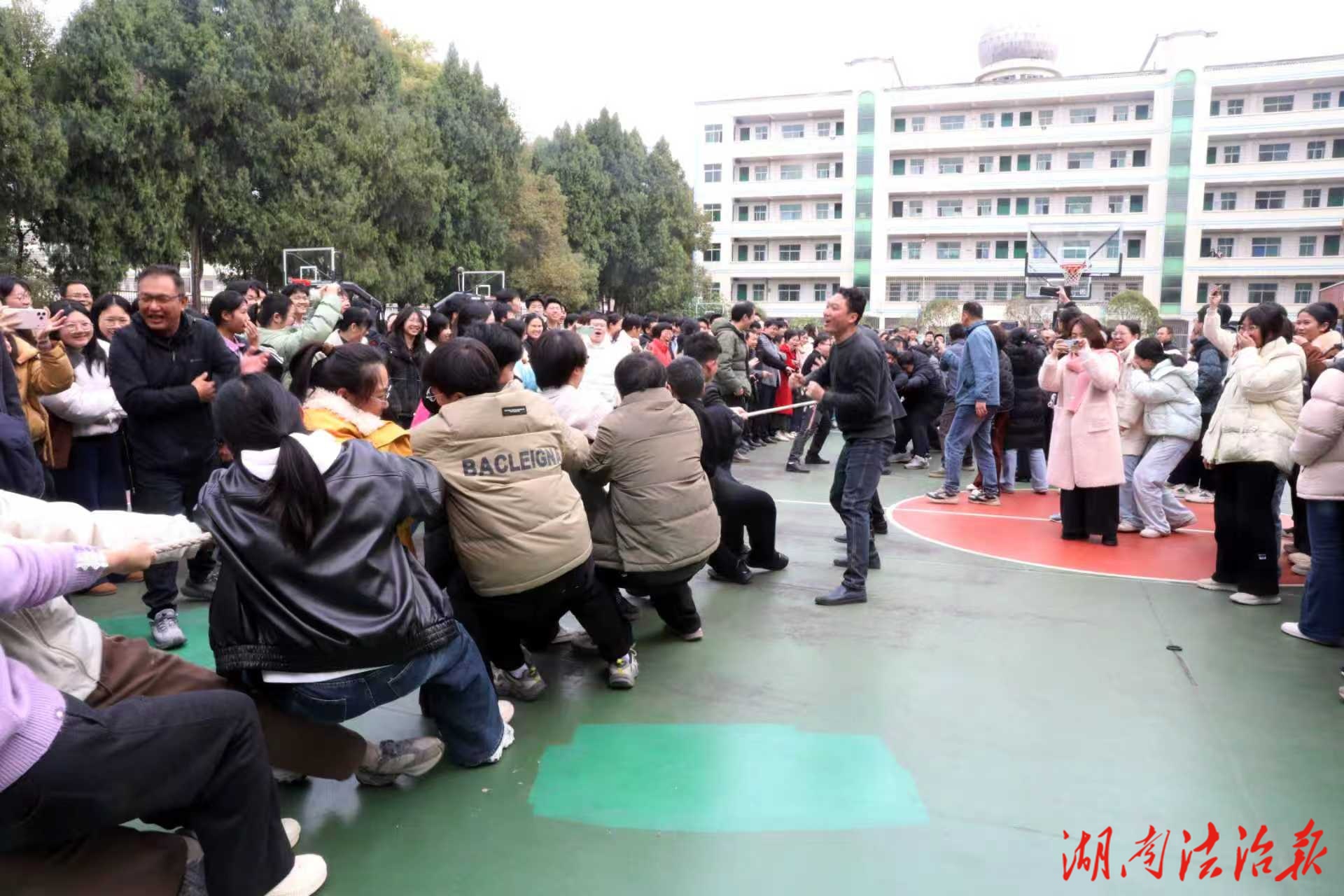 湖南法治报讯(通讯员 徐声军 邓娜 蔡培)为进一步丰富校园文化生活,厚植教职工团队协作精神,凝聚奋进育人的磅礴力量,3月6日上午,新田一中工会精心组织,在学校先冬蓝球场举行庆祝“三八妇女节”教职工拔河比赛。
