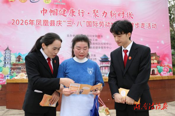 湖南法治报讯(通讯员 田红芳)春和景明,万物向新。在“三八”国际妇女节与植树节双节来临之际,3月6日,凤凰县人民法院联合县妇联、县司法局,走进凤凰中华大熊猫苑,在全县“巾帼健康行·聚力新时代”健步走活动现场开展普法宣传活动,把生态理念与妇女维权知识送到群众身边。