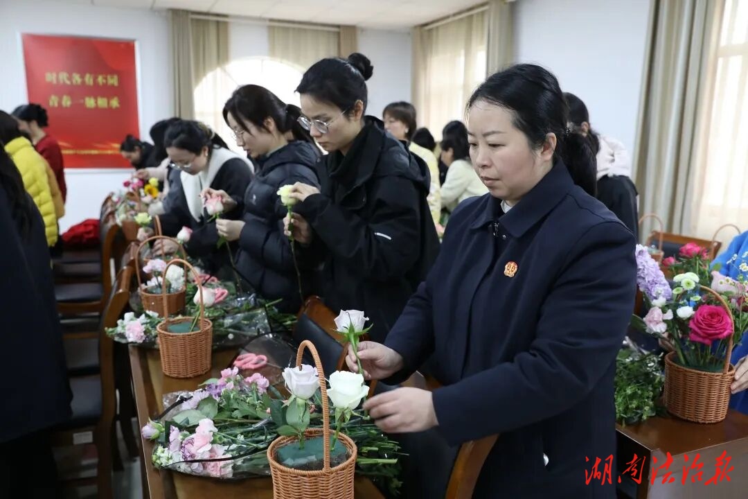 湖南法治报讯(通讯员 黄安琪 胡苧方)三月春风,花开正好。在“三八”国际劳动妇女节与女法官国际日来临之际,3月6日,新田县人民法院组织女干警开展“以花之名,绽放最美的你”主题插花活动,丰富女干警精神文化生活,展现法院巾帼风采。
