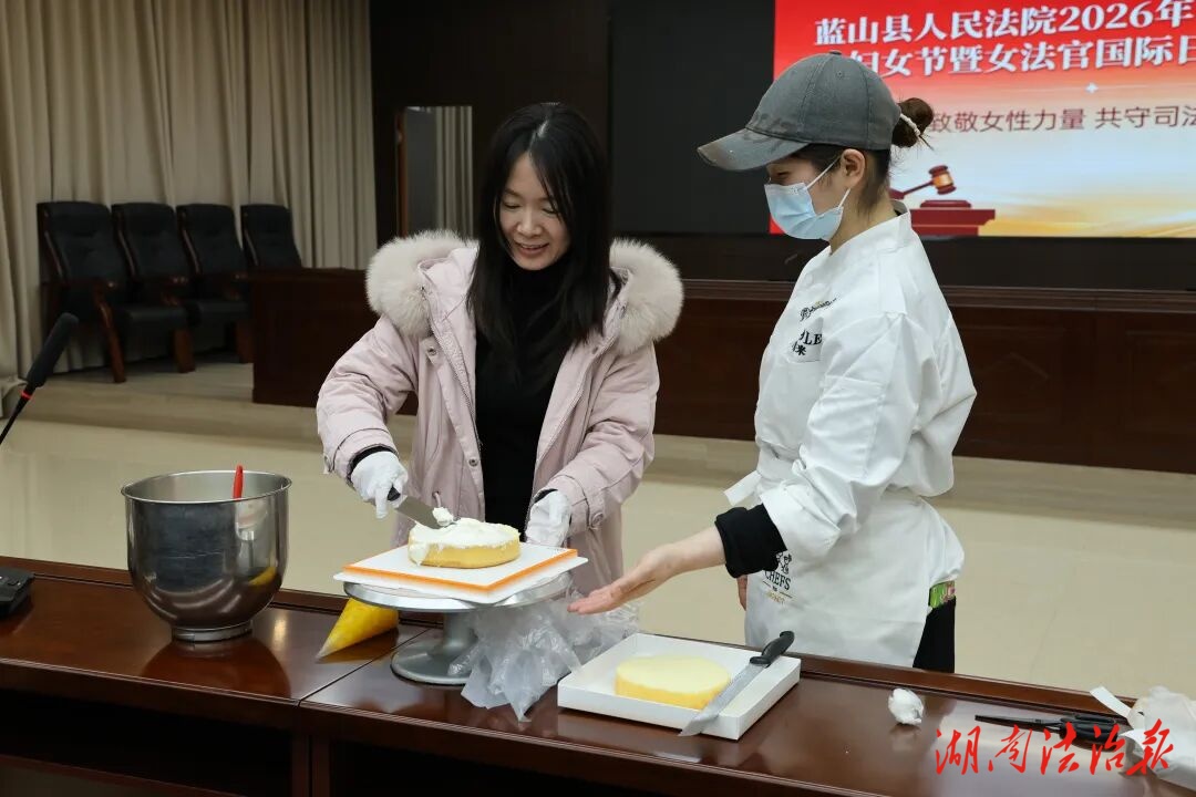 三月春风柔,巾帼暖意浓。在“三八”国际妇女节与女法官国际日双节来临之际,为致敬全院女法官、女干警在司法岗位上的坚守与担当,丰富女性工作人员的文化生活,3月6日下午,蓝山县人民法院精心组织了一场以“甜蜜相约,‘焙’感幸福”为主题的蛋糕DIY活动。