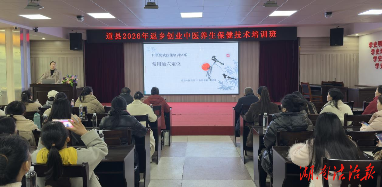 湖南法治报讯(通讯员 李昌春 邱瑾)为深入贯彻落实国家及省中医药发展相关政策,助力返乡创业人员提升就业创业技能,破解创业难题,近日,道县返乡创业人员中医养生保健技术培训班在道县中医医院举行,来自全县各乡镇(街道)的60余名返乡创业人员齐聚一堂,系统学习实用中医技能,为自身创业增收、为道县乡村康养服务发展注入新动能。
