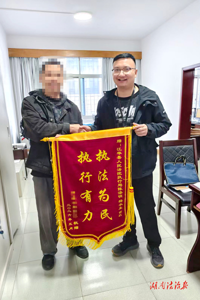 3月10日,江华法院执行局办公室里洋溢着温情与感动。申请人亲自送上“执法为民、执法有力”的锦旗,双手紧握执行法官的手,久久不松,那双手里攥着的是对法院的信任,是对公平正义最朴素的期盼,千言万语汇成一句颤抖的“谢谢,谢谢你们!”