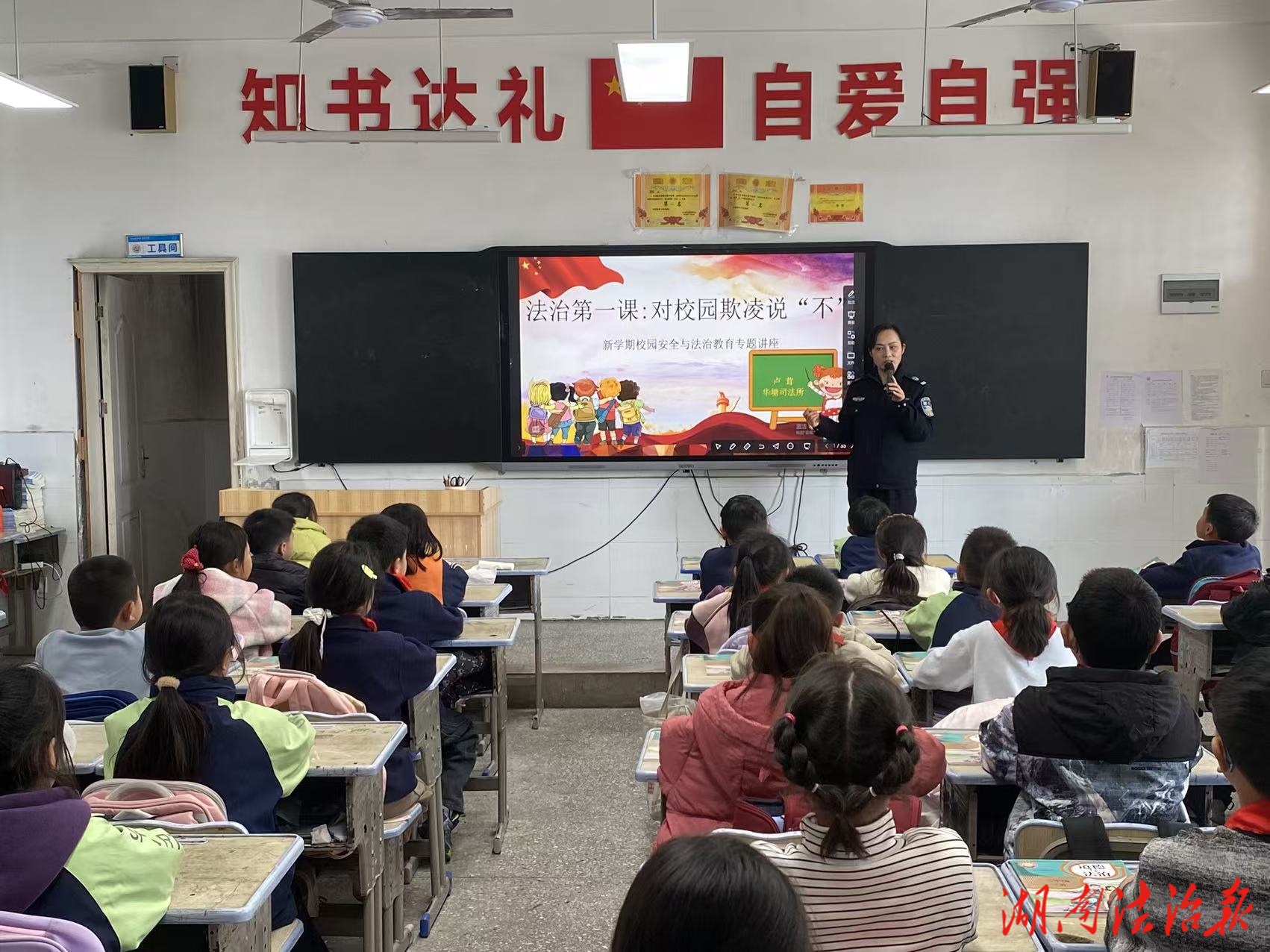 湖南法治报讯(通讯员 卢茸)为筑牢校园安全防线,增强学生法治观念与自我保护意识,从源头预防校园欺凌。3月12日,龙山县司法局华塘司法所走进华塘芙蓉学校,开展“开学法治第一课”宣讲活动,为该校学生送上一堂生动的法治护苗课。