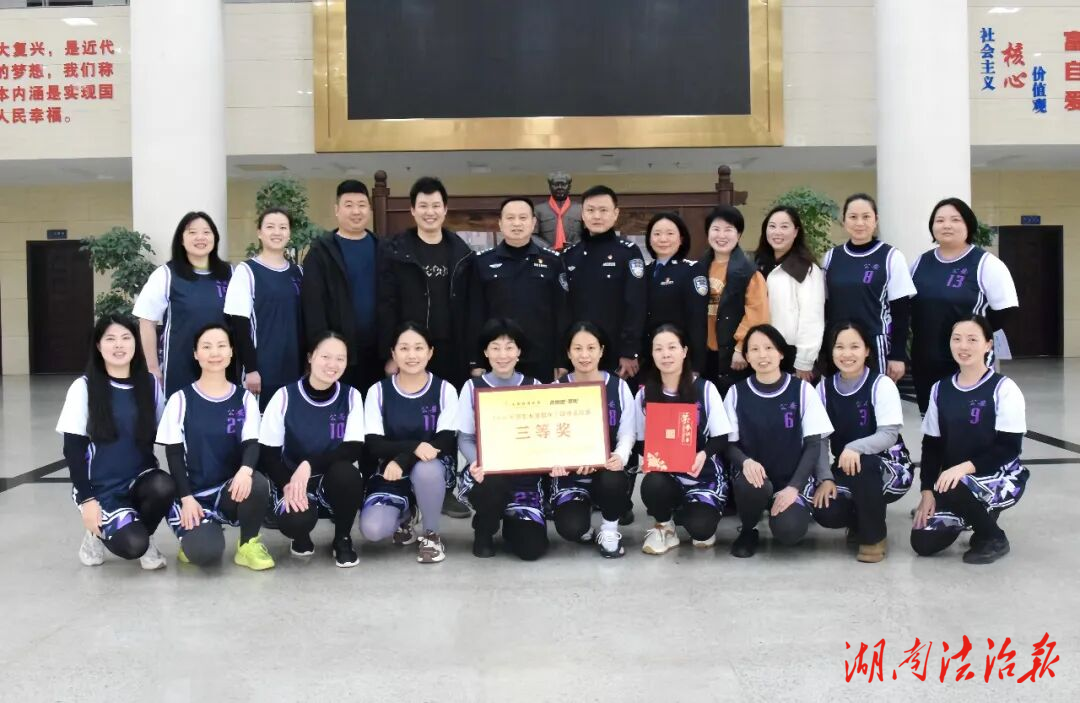 湖南法治报讯(通讯员 金彬 杨思怡 赵可欣)3月23日晚,“奔跑吧•邵阳”2026年邵东市首届女子趣味篮球赛圆满落幕。经过多日激烈角逐,邵东市公安代表队凭借顽强拼搏、团结协作的精神,斩获三等奖,用汗水与热血书写了警营巾帼的别样风采。